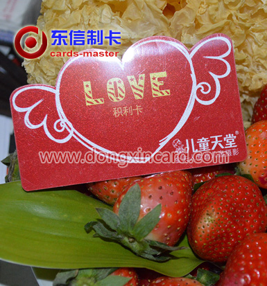 而今由于个性的需求印制不受尺寸的限制,导致了在世界各国出现不少形形色色的“怪异”卡,此类卡我们称之为异型卡。其中诸如长方形的,正方形的,三角的,椭圆圆形等几何形卡,我们称之为“非标准卡”;把动物形状、娃娃形状的一些特别形状卡称为“准异形卡”。相对而言“准异形卡”的制作工艺要比几何体难度更大一些。